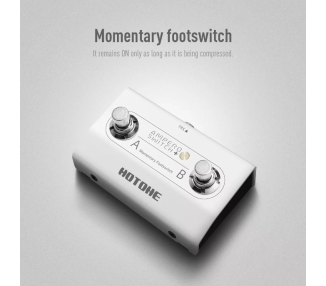 El Hotone FS-2 (Ampero Switch+) es un footswitch dual momentáneo diseñado para extender el control de unidades digitales sin ocupar espacio excesivo en tu pedalboard.