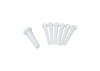 Su función principal es asegurar firmemente las cuerdas en el puente, permitiendo una correcta tensión y transmisión de vibración. El color blanco entrega una estética clásica y limpia, compatible con una amplia variedad de diseños de guitarras acústicas.