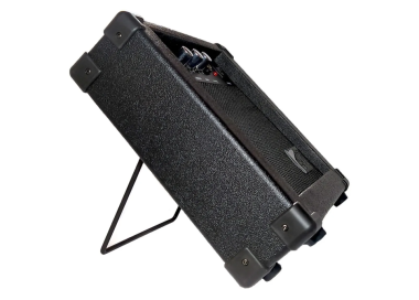 Su gabinete incorpora un soporte rebatible que inclina el amplificador hacia el músico, mejorando la proyección del sonido y la experiencia auditiva durante la práctica.