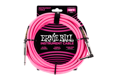 • ERNIE BALL 6078 10' Braided Straight/Angle - DUAL CONDUCTOR NEON PINK