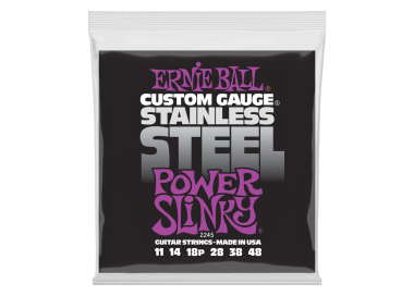 Las Ernie Ball 2245 Stainless Steel Power Slinky son cuerdas para guitarra eléctrica diseñadas para guitarristas que buscan mayor tensión, graves firmes y un tono brillante y agresivo. Su entorchado de acero inoxidable entrega una respuesta más definida, excelente proyección y una resistencia superior a la corrosión. El calibre Power Slinky es ideal para estilos potentes, afinaciones estándar con mayor cuerpo o guitarras que requieren estabilidad adicional sin perder claridad.