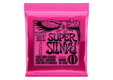 Super Slinky es el set más vendido de la marca gracias a su sensación cómoda, ideal tanto para rítmicas como para solos, permitiendo bends fluidos sin perder cuerpo en el sonido.