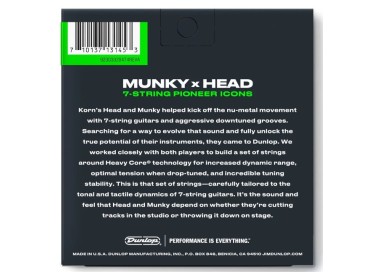 Las Korn Heavy Core String Lab Series forman parte del desarrollo artístico avanzado de Dunlop, creadas específicamente para soportar afinaciones graves extremas sin perder definición ni respuesta.