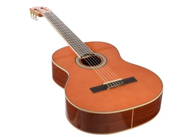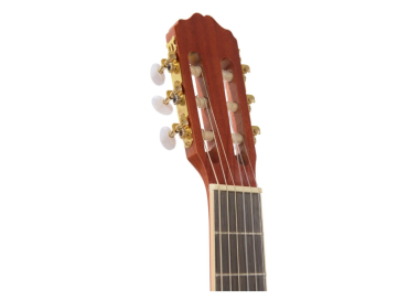 El acabado natural gloss resalta la estética de la madera y protege la superficie del desgaste, y el clavijero dorado combina elegancia y funcionalidad, asegurando una afinación precisa y estable.