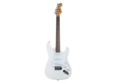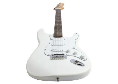 Diseño Stratocaster clásico con acabado blanco brillante