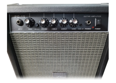 El amplificador incluido ofrece 15 watts de potencia, proporcionando mayor volumen y mejor respuesta que amplificadores básicos de menor potencia.