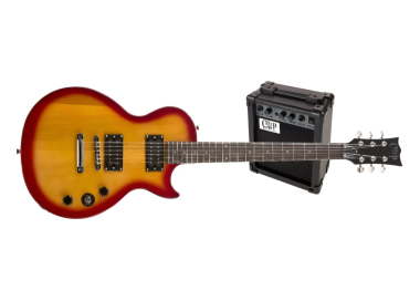 El Creep CLP-10 CHR SB Cherry Sunburst Pack tipo Les Paul con amplificador de 10W es un completo kit de iniciación diseñado para guitarristas principiantes que buscan el clásico sonido cálido y potente de una Les Paul. Incluye una guitarra eléctrica con cuerpo sólido, dos cápsulas humbucker de doble bobina, escala de 648 mm y construcción cómoda, junto con un amplificador de 10 watts con canal limpio y distorsión. Su elegante acabado Cherry Sunburst y accesorios incluidos como funda, afinador, cable y correa lo convierten en una solución ideal para comenzar a tocar desde el primer día.