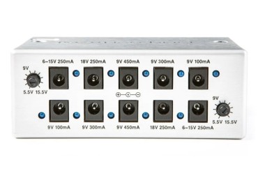 Las dos salidas ajustables de 6V a 15V permiten simular el efecto de una batería descargada, muy buscado en pedales vintage de fuzz, overdrive y efectos clásicos.