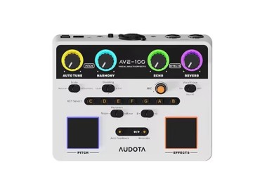 El AVE-100 incorpora un sistema de corrección vocal inteligente diseñado para mejorar la afinación en tiempo real sin afectar la naturalidad de la voz.